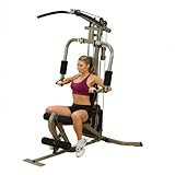 Complete gym in one compact, affordable machine. The padded pressing arms follow the natural arc of a free weight bench press and pectoral dumbbell fly. Comes with 145 lb. weight stack. Features 2200 lb. test nylon coated aircraft quality cables and fiberglass pulleys with ball bearing movement on solid axle rotation. No cable change design! Includes wide grip lat bar (for upper pulley station) and narrow grip low row bar (for lower pulley station).Press Arms: Bench Press, Pectoral FlyLeg Developer: Leg Extension, Leg CurlUpper Pulley Station: Front/Back Lat Pulldown, Ab Crunch, Tricep Pressdown, Tricep ExtensionLow Pulley Station: Curls, Seated Row, Shrugs, Oblique bends, Upright rows, Bent over Rows, Adduction, Abduction, Front/side Deltoid Raises.Specs:Dimensions: Width: 50" Height: 77" Length: 65"Product Weight: 255 lb.
