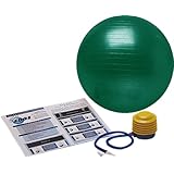 Accompanied by a foot-operated air pump and an instruction wall chart, this soft, inflatable, latex-free rubber ball supports and cushions the body during exercises that improve strength, flexibility, balance, coordination, and muscle tone. The wall chart offers detailed exercises for arms, torso, abdominals, obliques, buttocks, and legs. Recommended for people 5-foot-6 and under, the ball is 55cm (21.6 inches) in diameter and weighs three pounds.